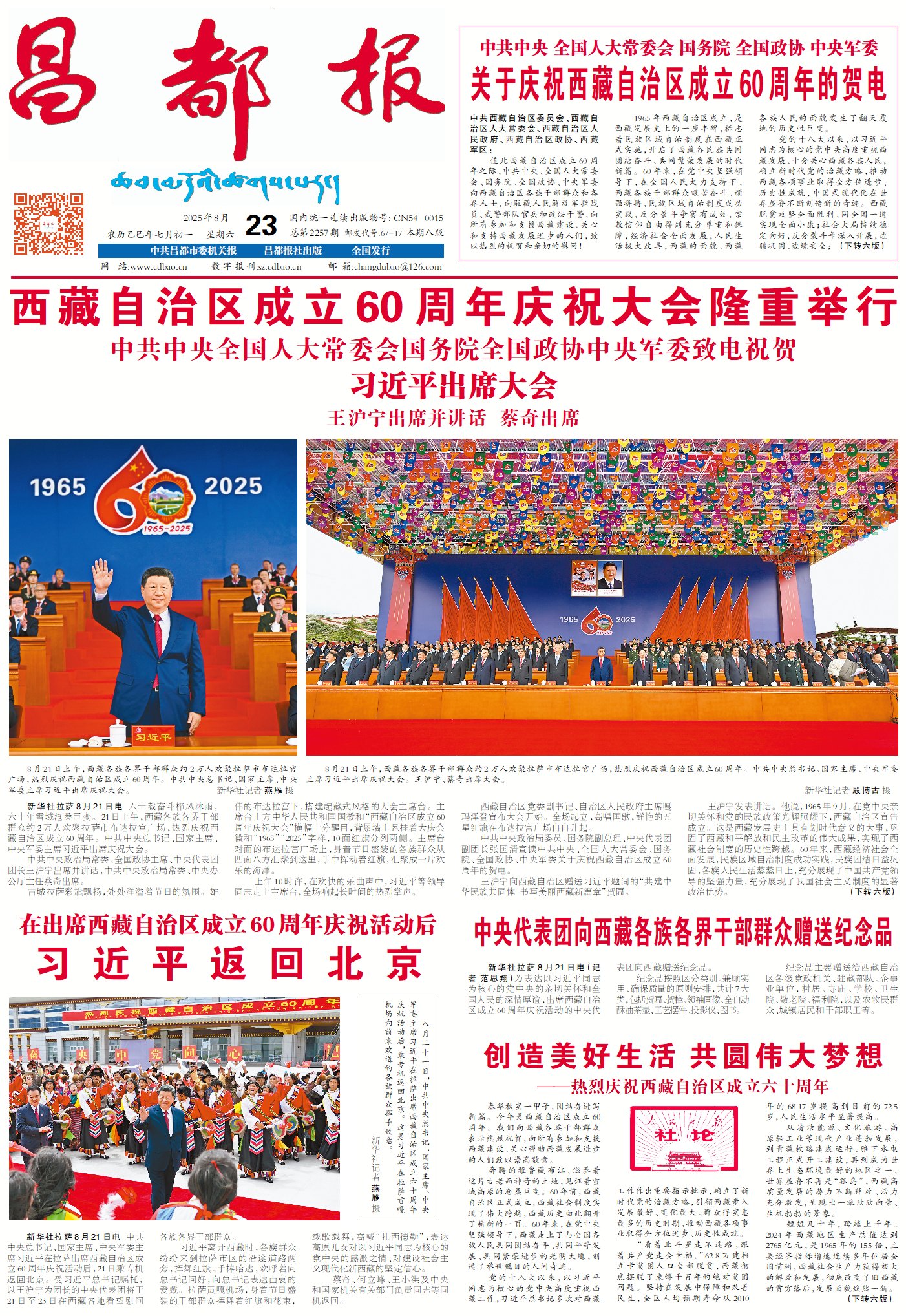 春華秋實一甲子,團(tuán)結(jié)奮進(jìn)寫新篇。今年是西藏自治區(qū)成立60周年。我們向西藏各族干部群眾表示熱烈祝賀,向所有參加和支援西藏建設(shè)、關(guān)心幫助西藏發(fā)展進(jìn)步的人們致以崇高敬意。